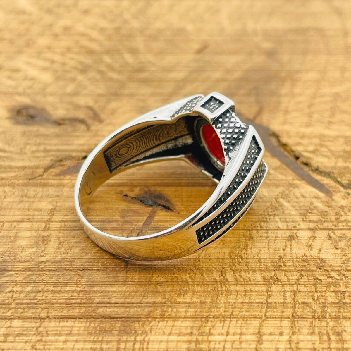 Bague Ovale en Agate Rouge - Bijoux en Argent Sterling Fait Main